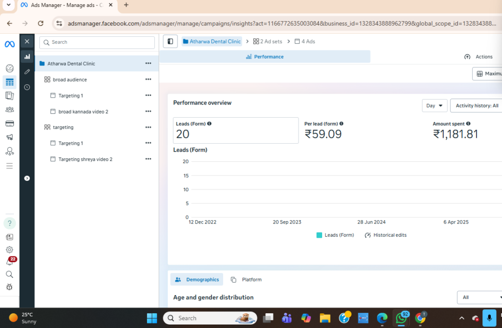 Investment varies based on market, specialty, and goals. Most clinics invest ₹60,000–1,20,000 per month total (ad spend + management). This typically generates 3–5x return within 90 days. Specific pricing discussed during strategy call.